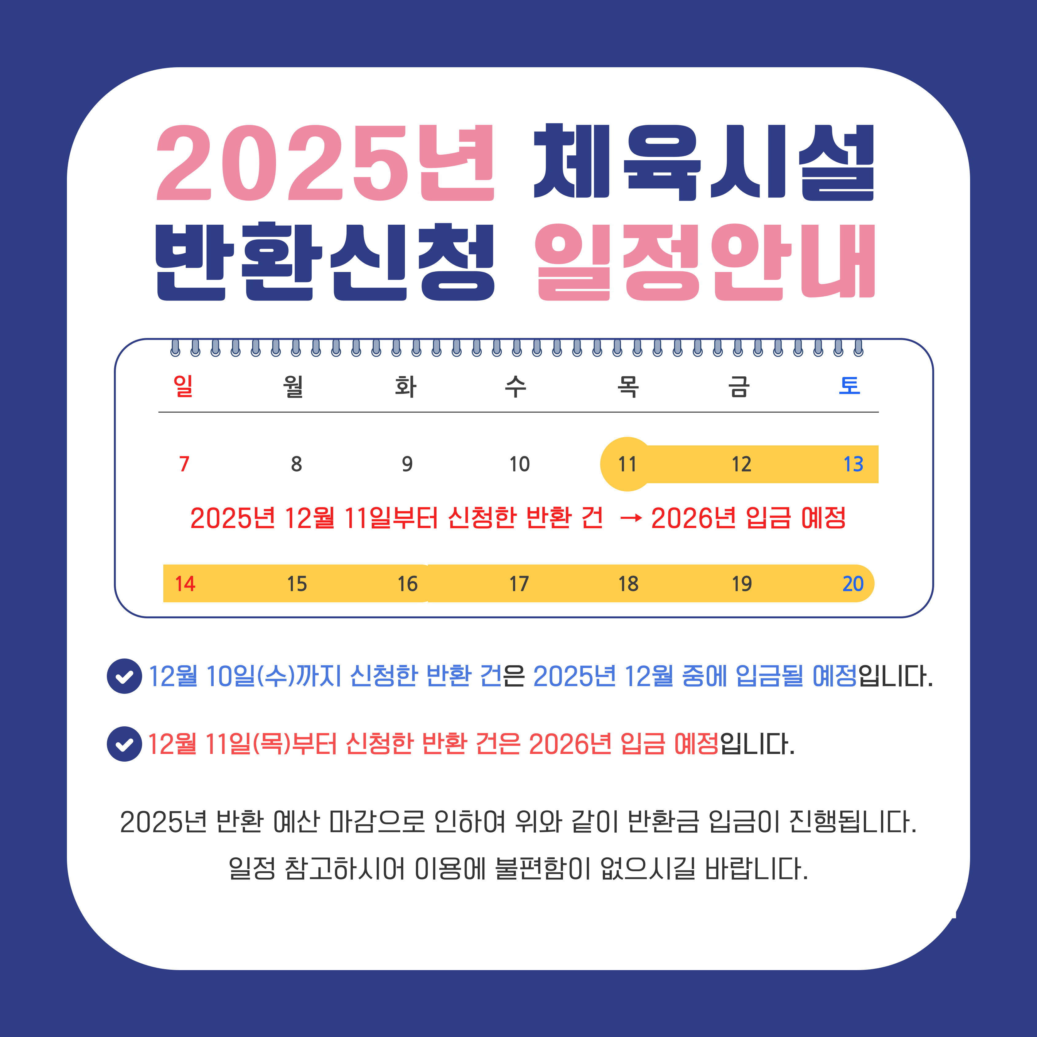 [공지] 2025년 반환 신청 일정 안내