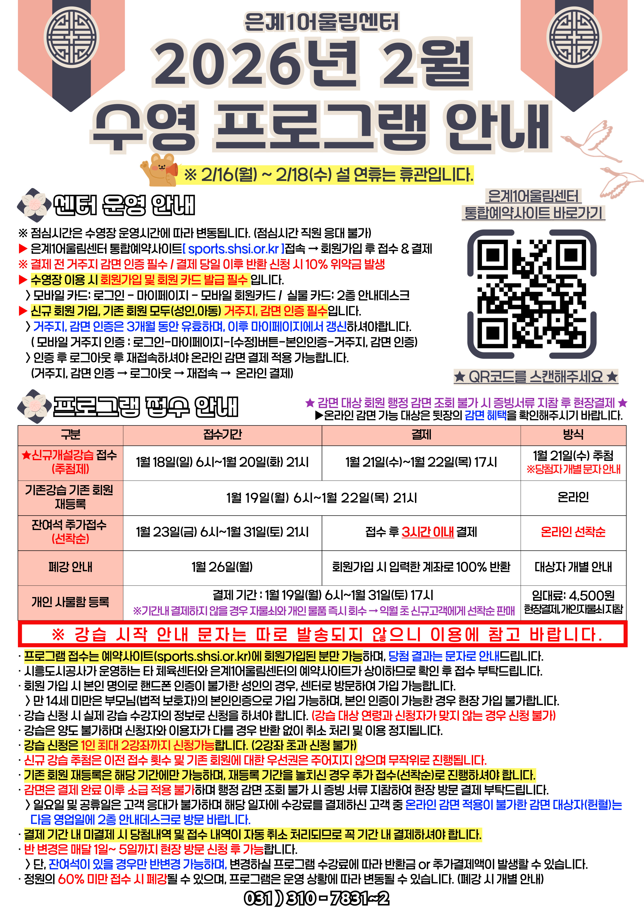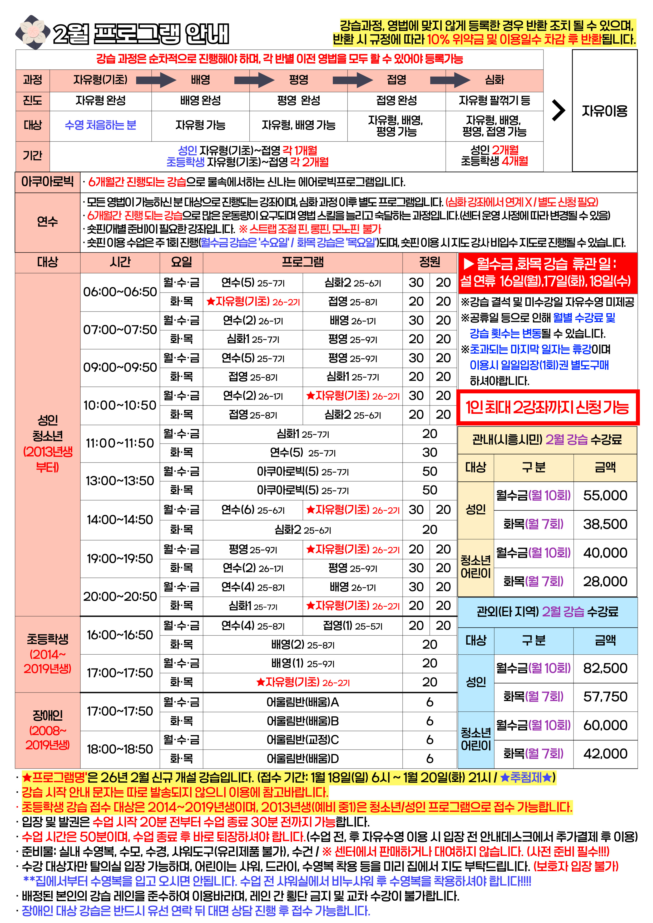[프로그램]은계1어울림 수영장 2026년 2월 프로그램 안내