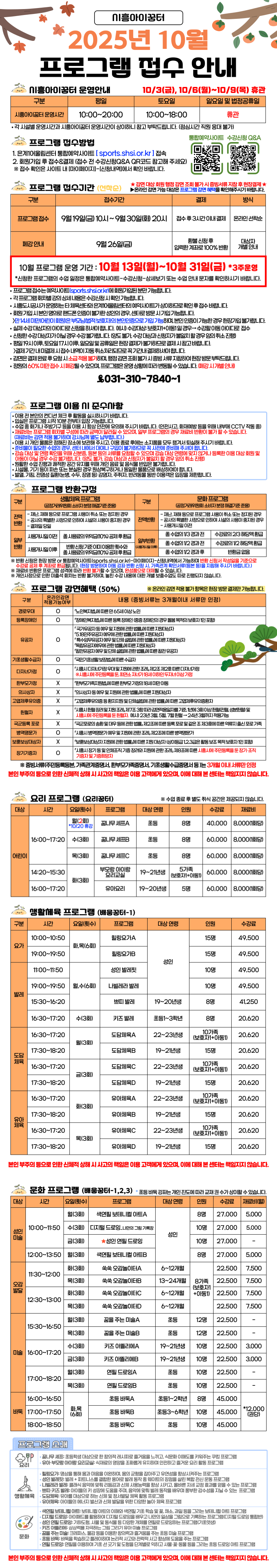 [프로그램] 시흥아이꿈터 25년 10월 프로그램 안내