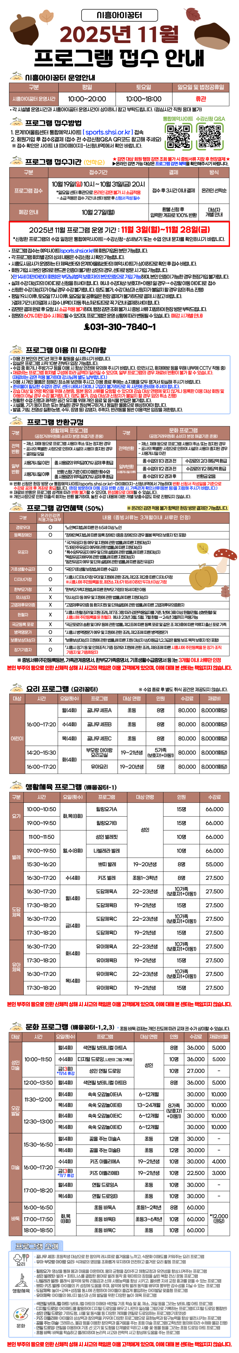 [프로그램] 시흥아이꿈터 25년 11월 프로그램 안내