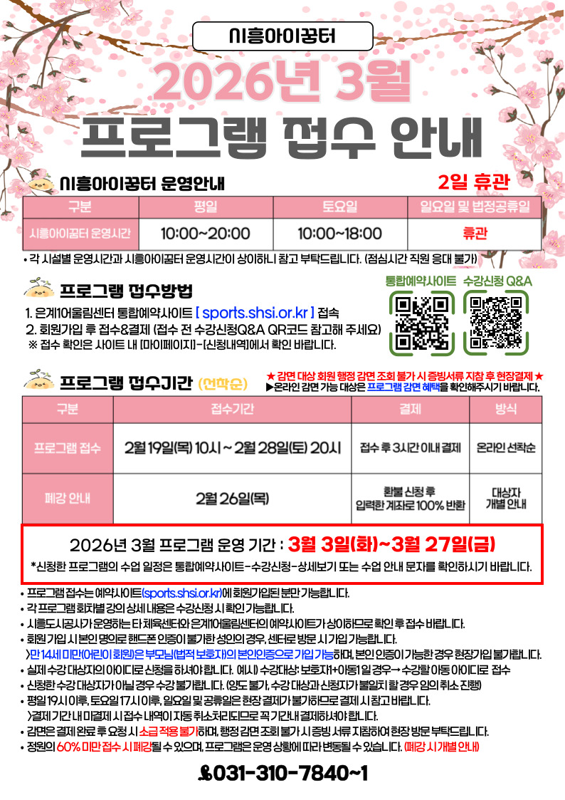 [프로그램] 시흥아이꿈터 26년 3월 프로그램 안내