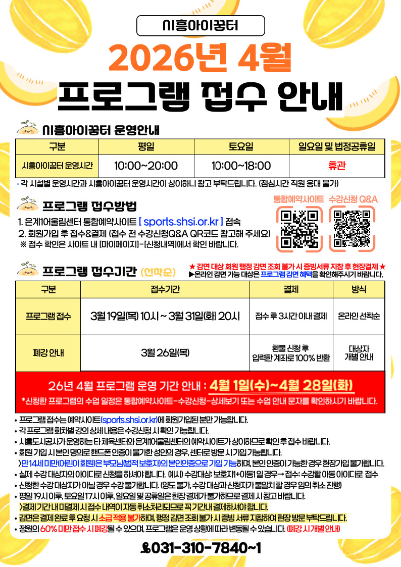 [프로그램] 시흥아이꿈터 26년 4월 프로그램 안내