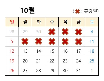 ※ 10/1(수) ~ 10/10(금)은 프로그램 운영하지 않습니다.