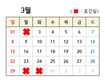 ※ 3.2(월) 대체공휴일 휴관, 3.30(월)~3.31(화) 프로그램 운영하지 않습니다.